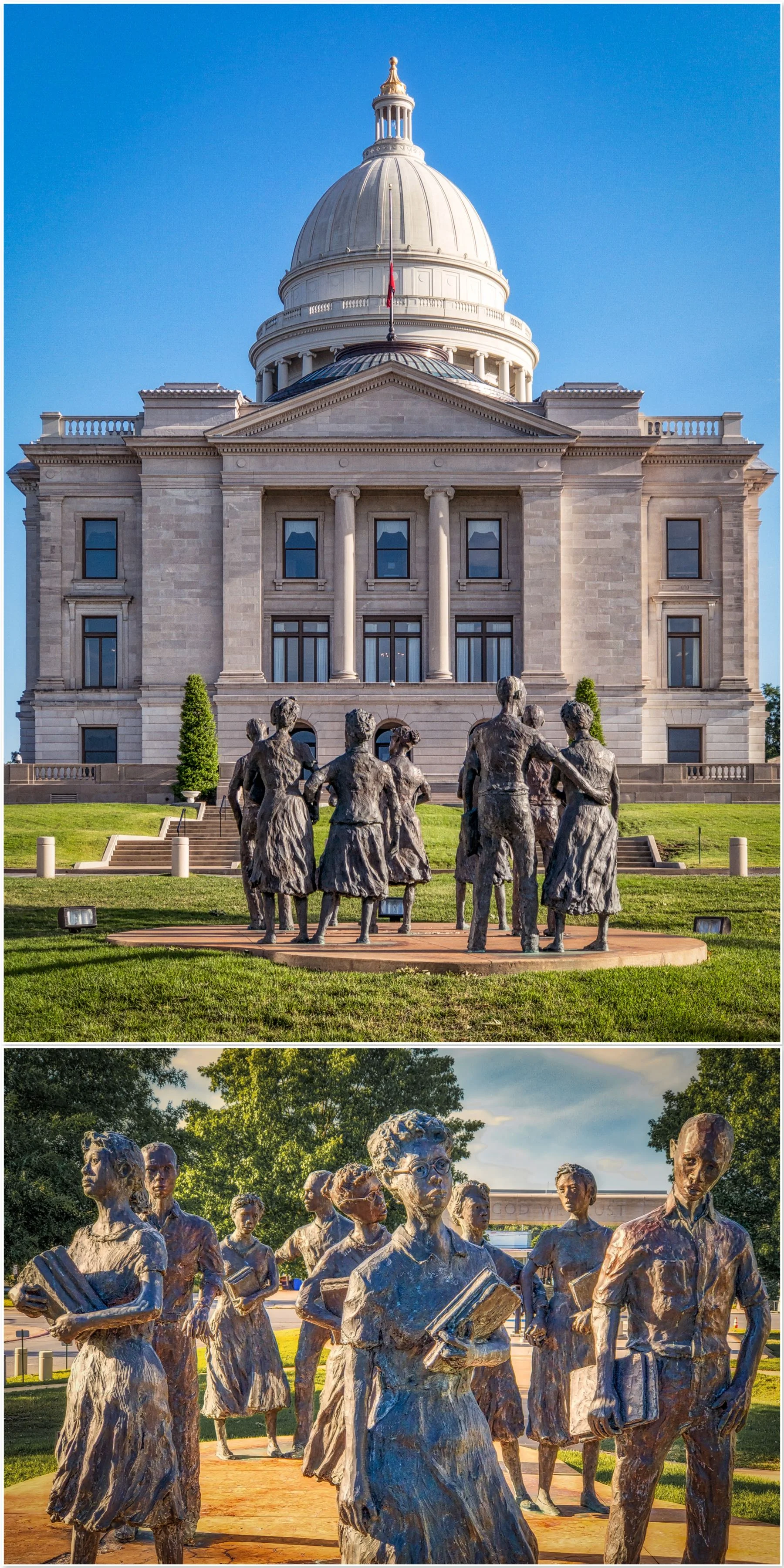 A monument honoring the Little Rock Nine on the grounds of the Arkansas State Capitol.